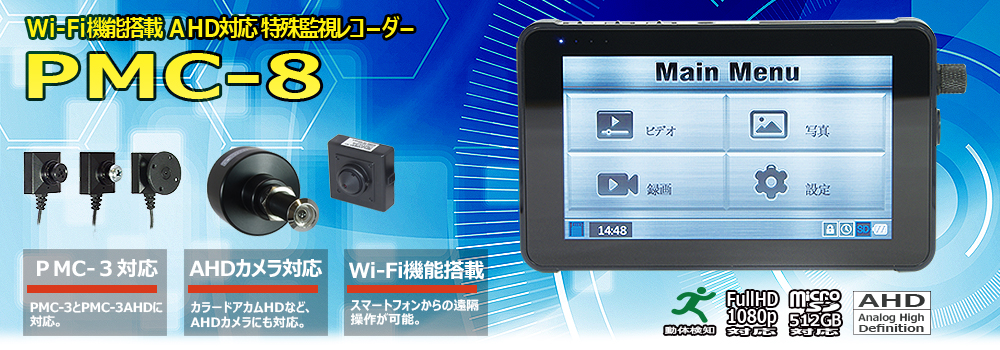 Wi-Fi機能搭載 AHD対応特殊監視レコーダー「PMC-8」発売