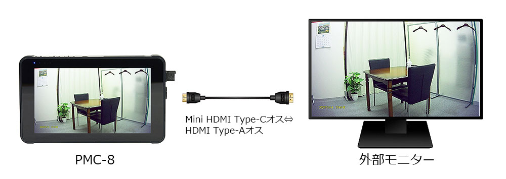 ※外部モニター出力時は、PMC-8の画面が消灯します。