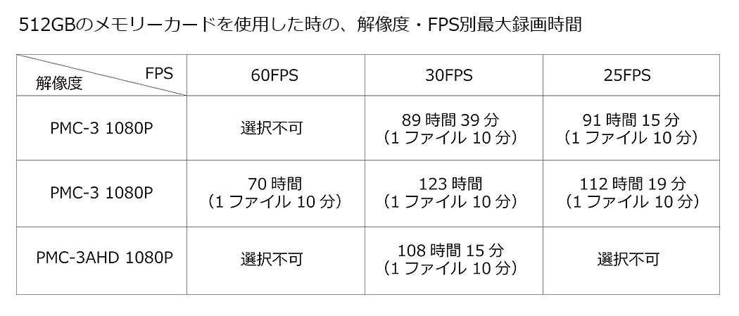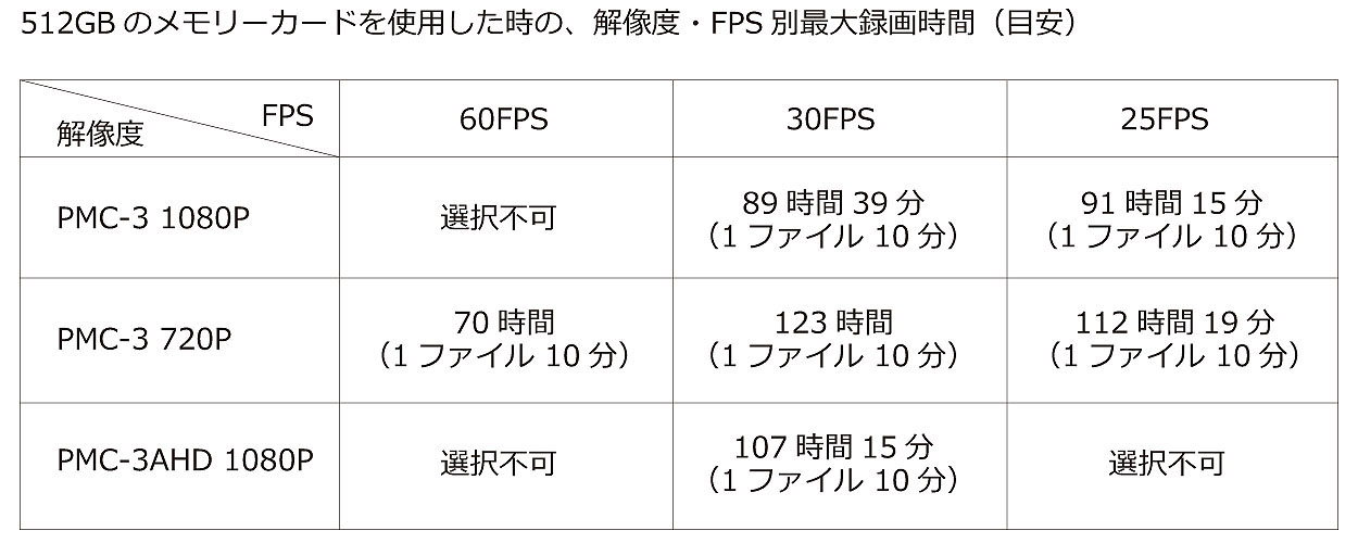 | ファイルサイズ | 1ファイル10分/935MB(1080p/30fps) |
